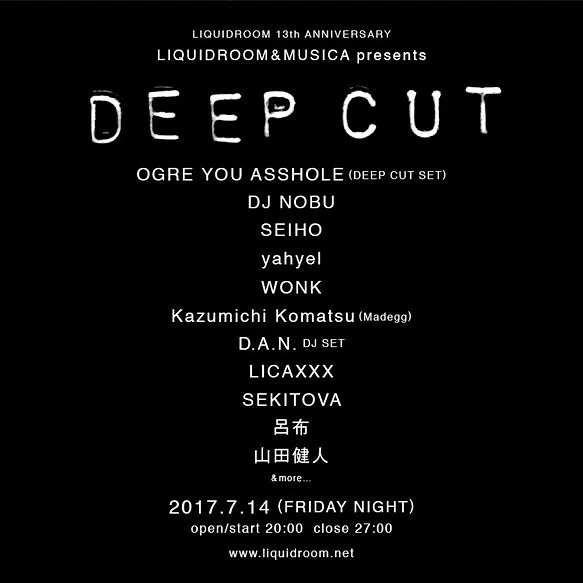 LIVE : OGRE YOU ASSHOLE[DEEP CUT SET], DJ NOBU, SEIHO, yahyel, WONK, Kazumichi Komatsu (Madegg), D.A.N.(DJ SET), LICAXXX, SEKITOVA, 呂布, RLP (Cosmopolyphonic) , Albino Sound , 山田健人 / Sound:佐々木幸生 (Acoustic) / Lighting:YAMACHANGnew