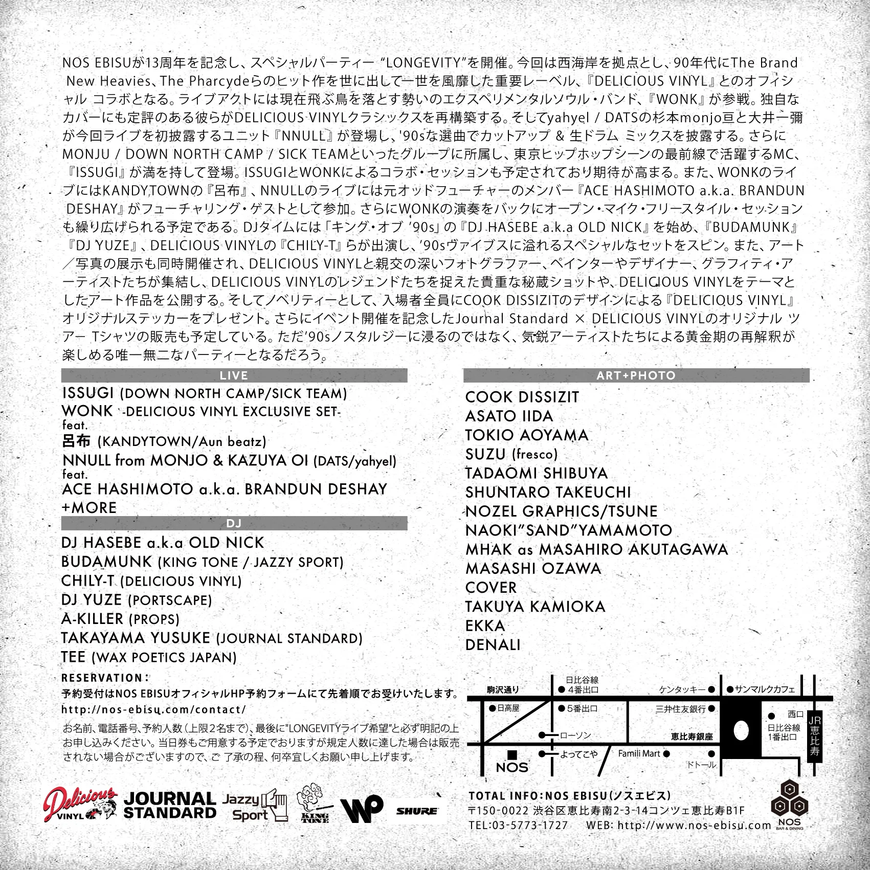 お名前、電話番号、予約人数(上限2名まで)、最後に" LONGEVITY ライブ希望 ”と必ず明記の上お申し込みください。当日券もご用意する予定でおりますが規定人数に達した場合は販売されない場合がございますので、ご了承の程、何卒宜しくお願い申し上げます。